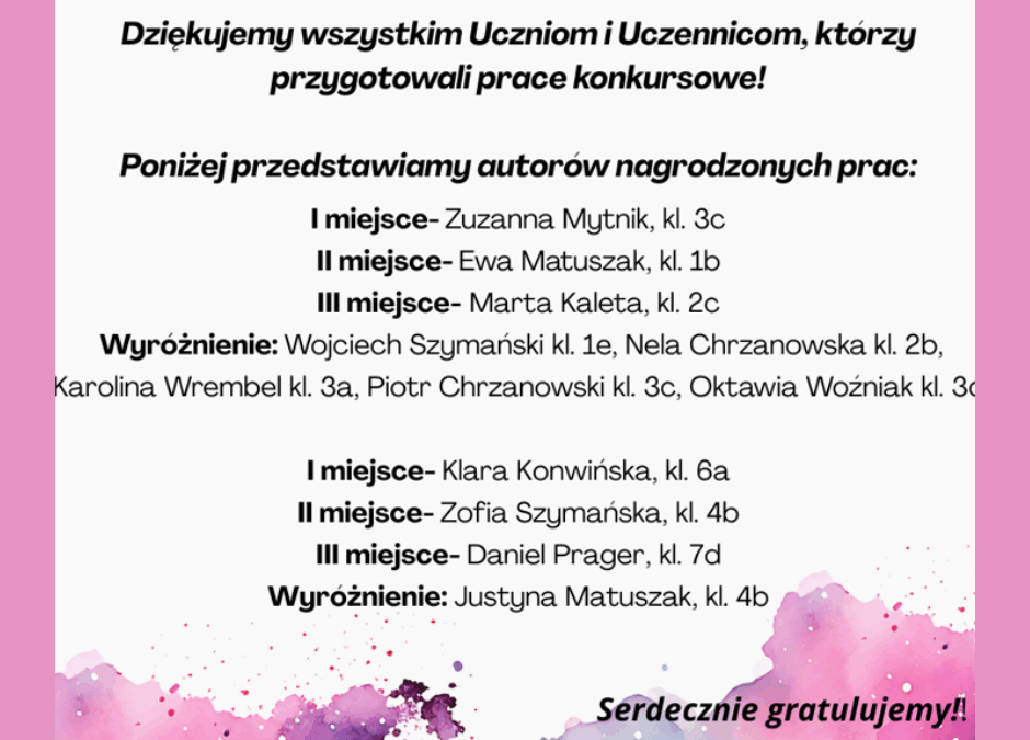 Najlepsze prace można podziwiać na szkolnym korytarzu oraz w galerii zdjęć na stronie internetowej szkoły.