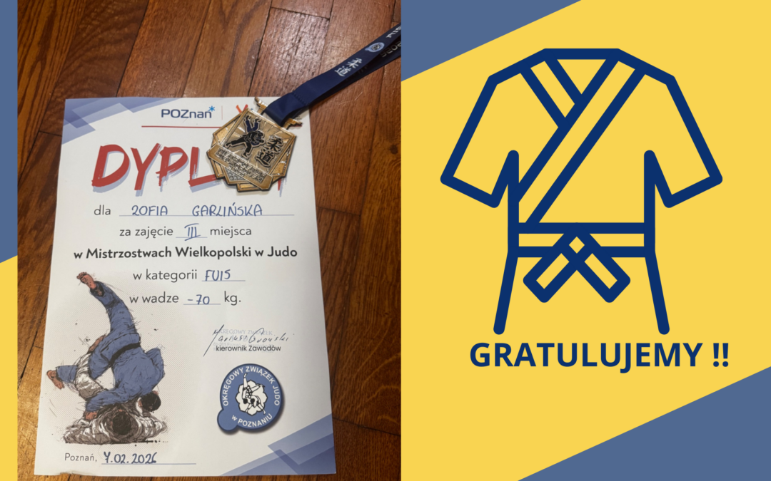 W dniu 7 lutego 2026 r. nasza uczennica Zosia z kl. 6a zajęła III miejsce w Mistrzostwach Wielkopolski w Judo, które odbyły się w Poznaniu. Startowała w kategorii FU15. Osiągnięcie to jest wynikiem wielu miesięcy systematycznych treningów, samodyscypliny oraz ogromnego zaangażowania.