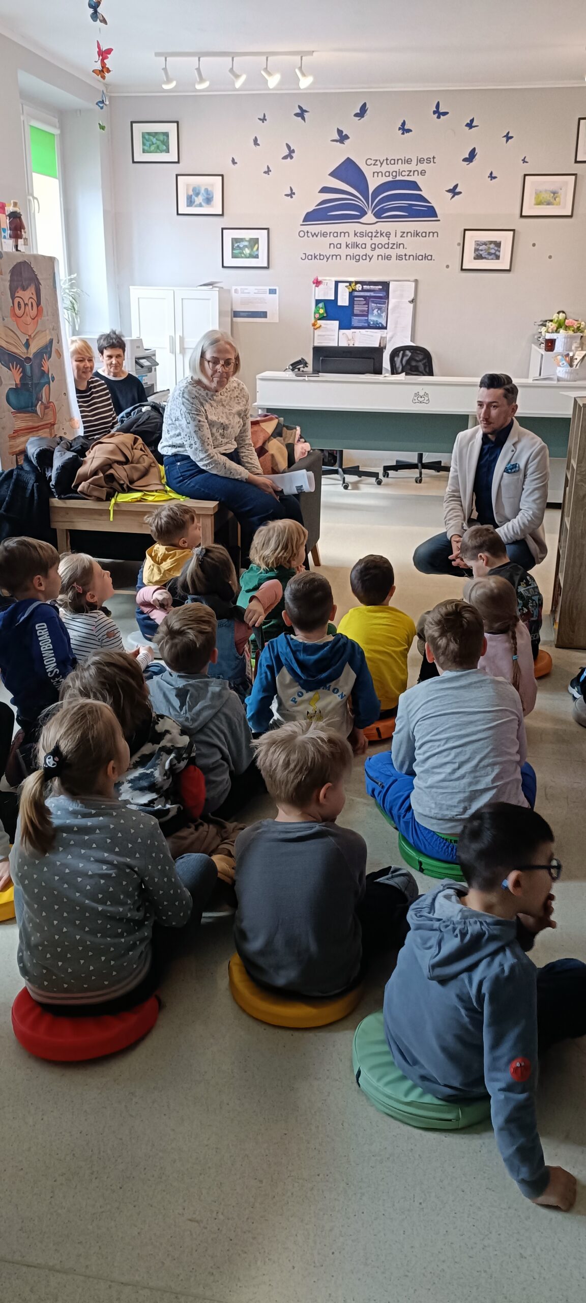 W związku ze zbliżąjącym się Światowym Dniem Książki, naszą bibliotekę odwiedziła grupa starszaków z zaprzyjaźnionego Przedszkola nr 47. Na początku dzieci zapoznały się z pracą w bibliotece, potem w skupieniu wysłuchały krótkiej historyjki o przygodzie pewnej książki. Śpiewająco odpowiedziały na pytania dotyczące opowieści. Następnie w grupach układały przygotowane dla nich puzzle. Na koniec wizyty obejrzały nasze zbiory biblioteczne.